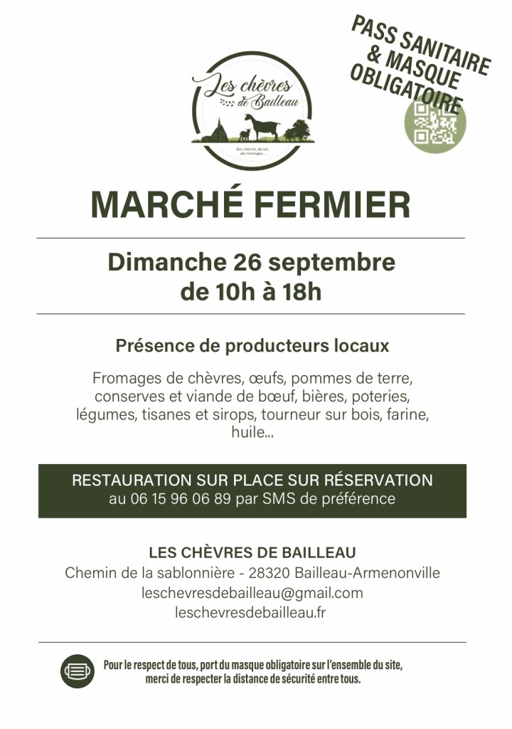 - 28 septembre : Marché fermier de la chèvrerie